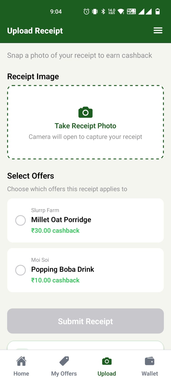 Upload your receipt